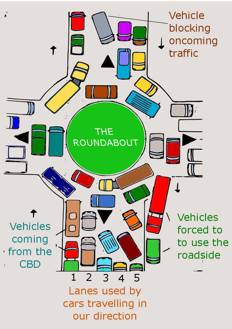 As I gazed through the bus window I noticed a development that was apparently, exacerbating the congestion at the intersection: vehicles that were moving along our direction had colonized the part of the road that was meant for the oncoming traffic. By so doing, they were partially blocking oncoming traffic. The drivers of those vehicles were supposed to join a long queue of drivers who eagerly awaited their chance to steer their vehicles across the roundabout intersection. However, they were very impatient and unwilling to join the long queue. So, to bypass the long queue, they drove into adjacent lanes which were meant for the oncoming vehicles. That was possible because of the transient utilisation of oncoming lanes by oncoming vehicles. Such unscrupulous behaviour is not uncommon at other intersections in Harare, it is in fact the reason why many commuters in Harare spend long hours trying to get from one point to the other. However, at this point, the ill-mannered motorists unrestrictedly broke road traffic rules since no traffic police officers were manning that part of the intersection.