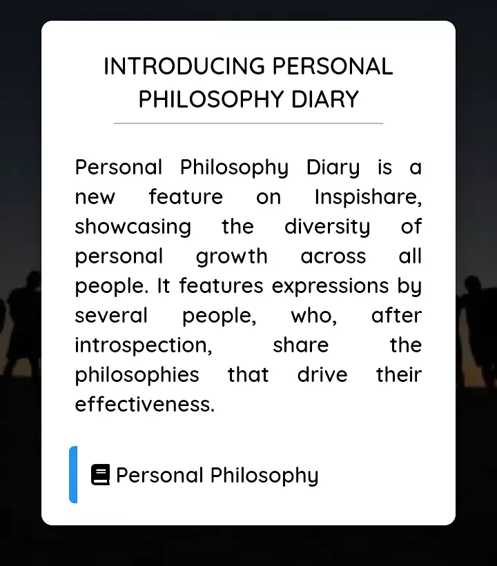 Such a remarkable shift gave rise to a new feature on Inspishare which is called the Personal Philosophy Diary. It is a new feature, which I envision to become a large repository of validated ideas on personal growth and effectiveness that are offered by different people from all walks life. Given that it will feature a multiplicity of perspectives by different people, the feature may be subsequently renamed to Perspectives.